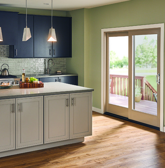 A sleek and contemporary vinyl patio door.